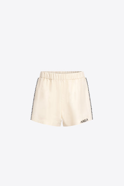 Crystal trim track jacket featuring AREA logo and zip closure side pockets. Available in Cream White & Black.