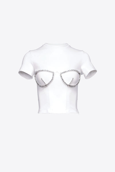 Classic denim wide-leg jeans featuring crystal cupchain trim slits at thighs. Available in Light Blue.