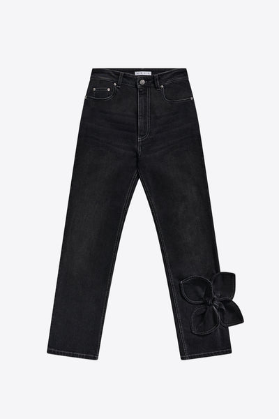 Denim button front halter top with bow embellishment. Available in Washed Black.
